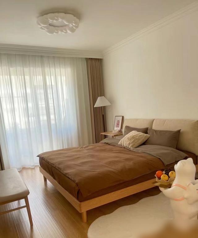 硬裝像白紙打底,軟裝才能隨意發揮——櫻桃木傢俱配原木地板,素淨中透着溫度。
