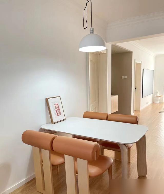 餐廳簡單到極點,木餐桌配椅子,沒餐邊櫃搶鏡。