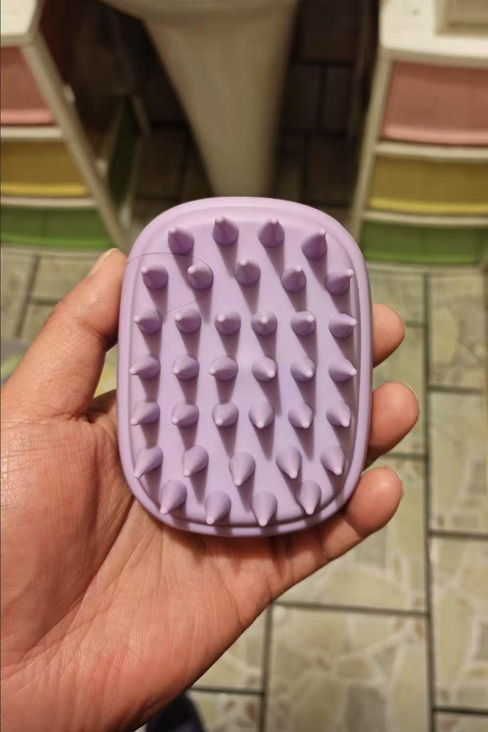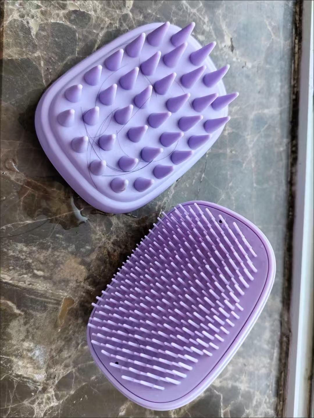 洗頭時,我先擠一點洗髮水在短齒上,把頭髮梳順,泡沫也跟着都起來了,再用硅膠長齒洗頭髮,來回給頭髮按摩,很快能止癢非常舒服!