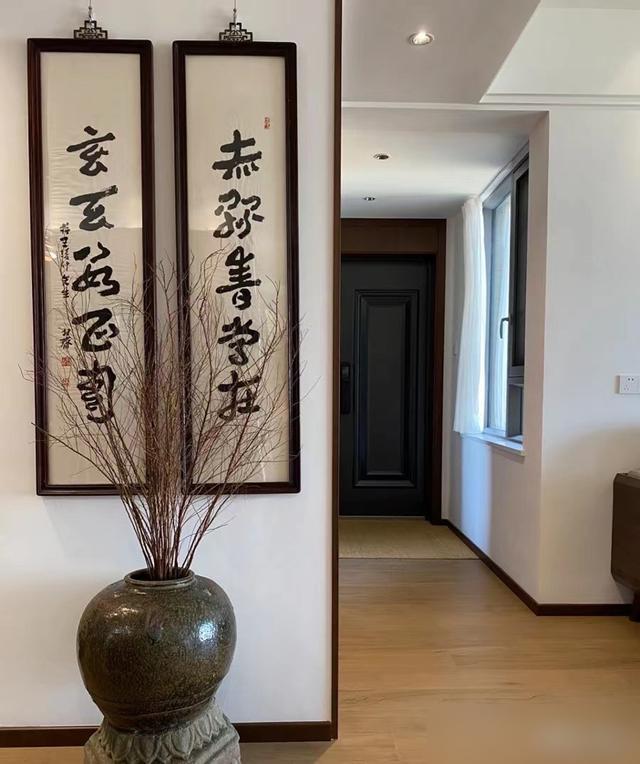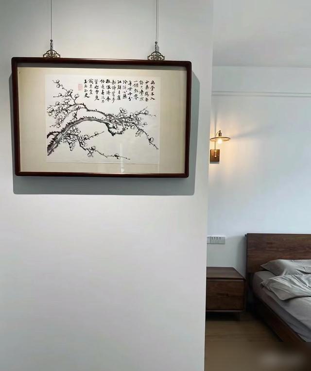 牆面掛的字畫選得很有品味,既有中式的文雅氣韻,又不會顯得老氣橫秋。