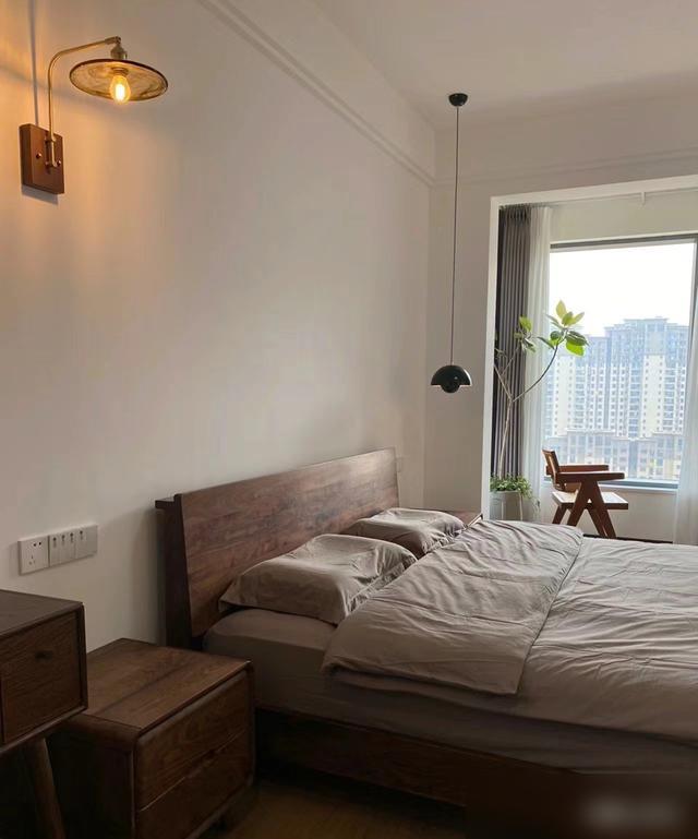 所有物件都帶着實用屬性,連牀品都講究“一明一暗”的搭配——耐髒又提亮空間。