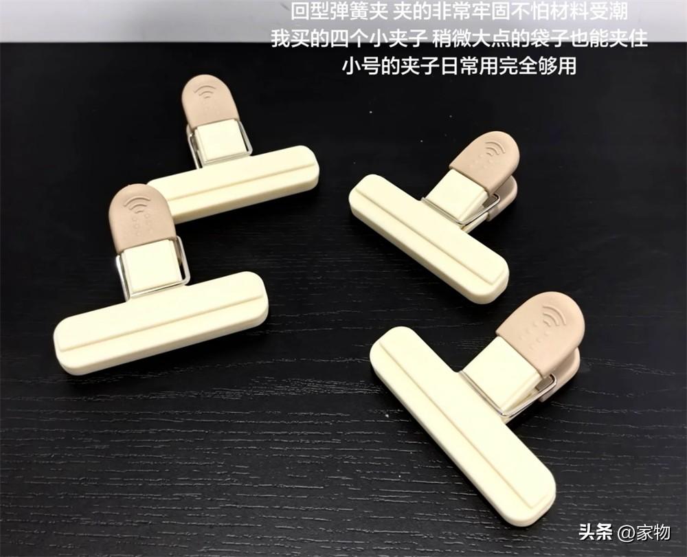 喫不完的零食膨化食品,用它夾起來能防止受潮;分裝剩下的調料,用它夾起來能防止進灰進蟲;其他一些袋裝封口,也可以用這種小夾子,能起到充分密封的效果,誇張點講,不亞於熱熔塑封了。