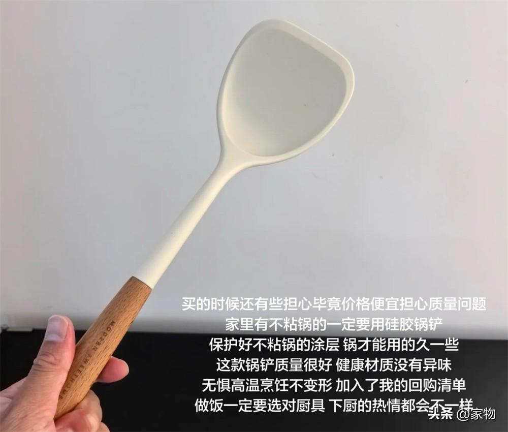 同樣爲了保護塗層鍋,我還買了這個硅膠炒菜鏟(想想它真的比鐵鍋嬌氣太多了),畢竟是耐高溫的硅膠材質,用了三四個月絲毫沒有變形的跡象,而且清洗起來超簡單,一點點洗潔精,用水一衝就行。