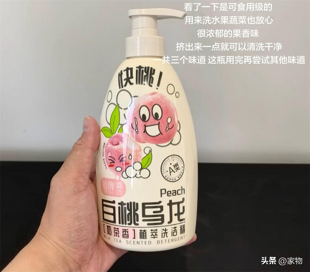 什麼茶香、茉莉香甚至玫瑰香的洗潔精我都用過,最後還是留下了這個白桃烏龍的洗潔精,味道比較淡,但卻能有效祛除油腥味,溶解油污效果也不錯,八塊錢一小瓶能用倆仨月,愛了。