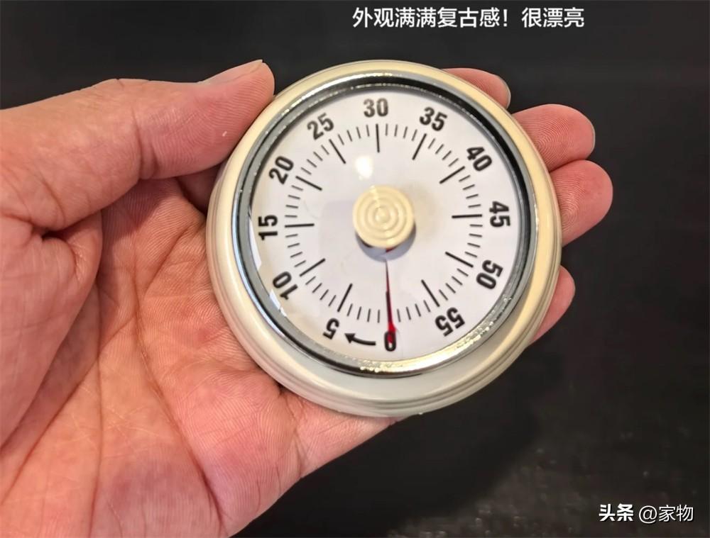 後來我還是在拼夕夕上淘到了這個外觀復古的計時器,它背面是磁吸式的,可以隨手貼在油煙機或者冰箱側面,用的時候一擰就可以開始倒計時,真是我家廚房的一大利器。