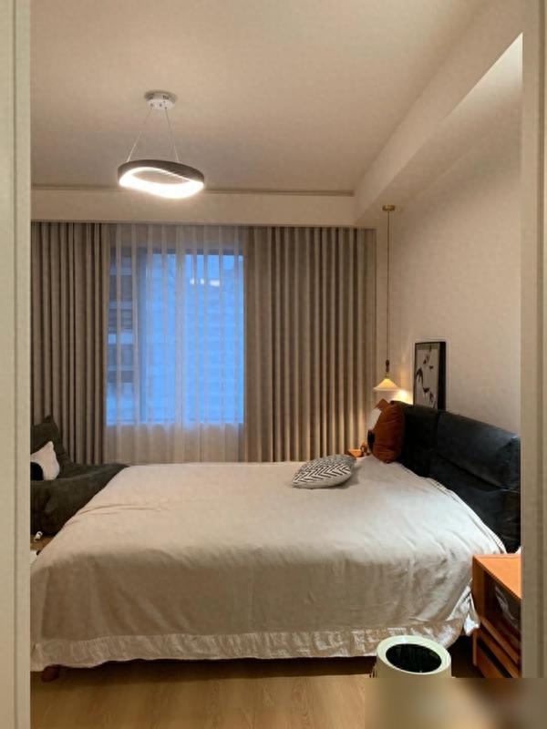 奶茶色窗簾選得也精準,亞麻材質透光不透影,比網紅拼色簾耐看十年。