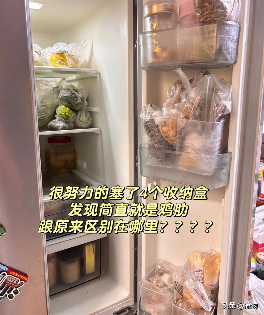 同樣的,還有冰箱裏的側邊收納盒,買之前覺得小小一個,放在冰箱側格里,能將我各種沒用完的醬料、罐頭分類收納開,讓冰箱裏變得更整潔乾淨,但實話說,我是真沒想到這小東西還挺佔地。