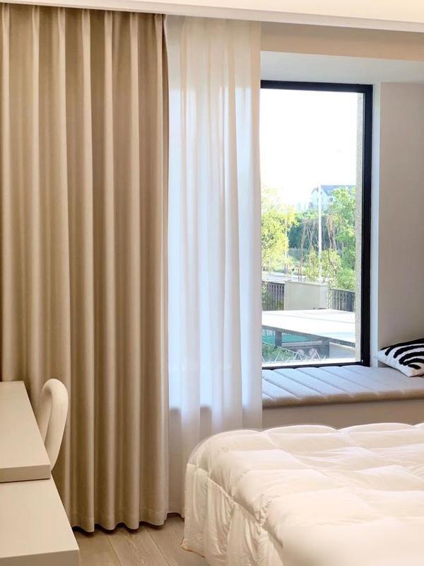 現在流行的奶茶色、霧霾藍就聰明得多,莫蘭迪色系溫柔不刺眼,85%以上的遮光率足夠應對日常起居。