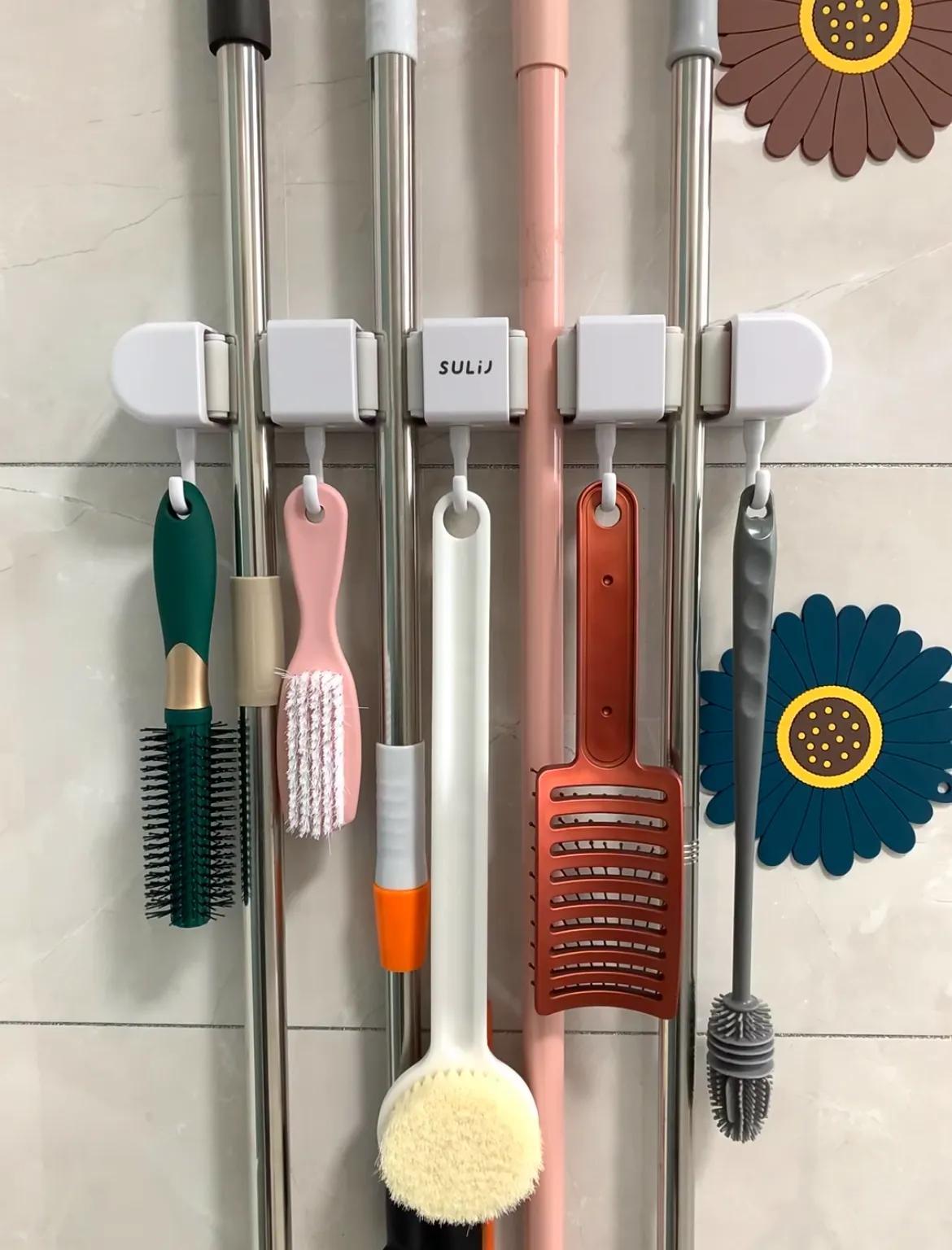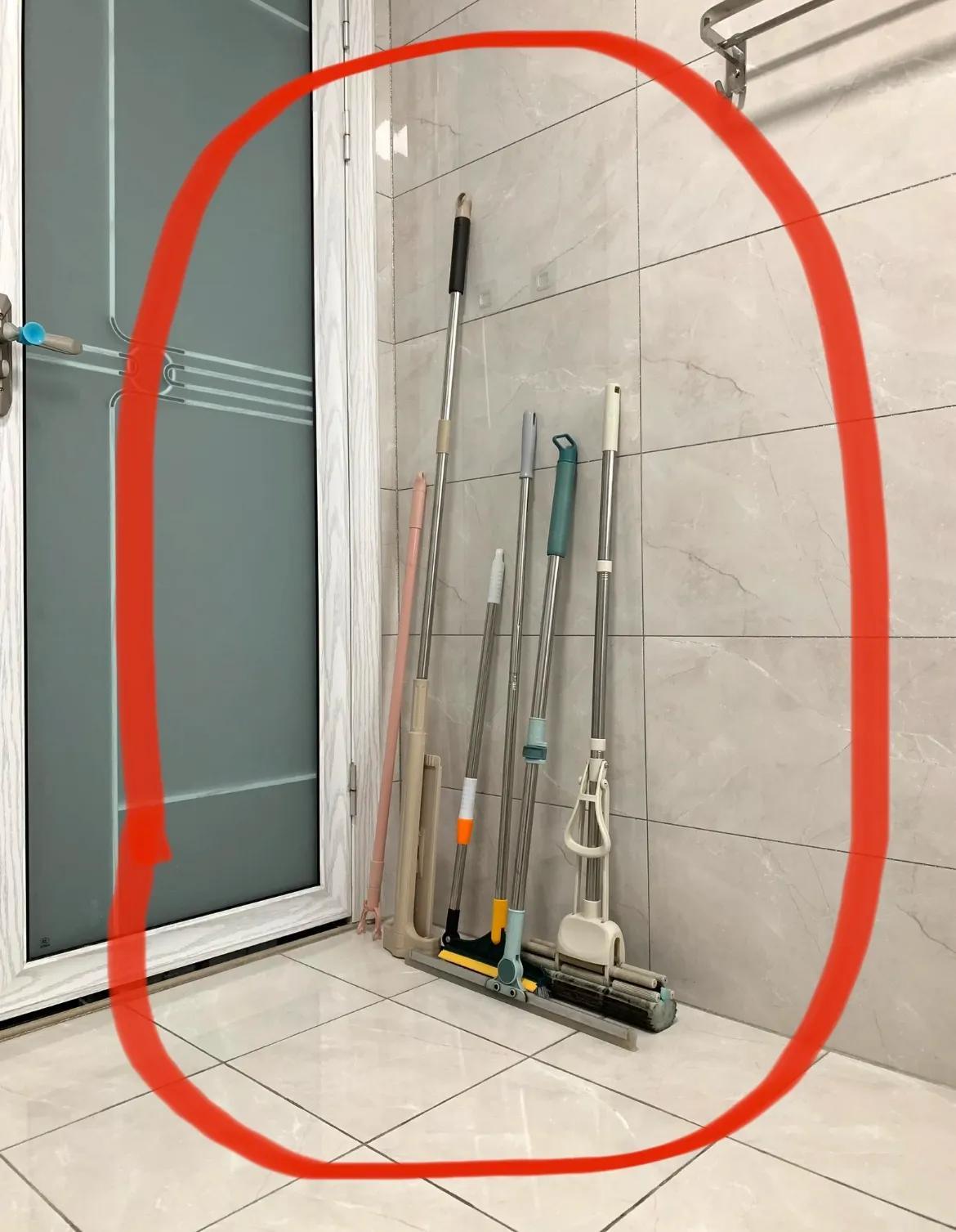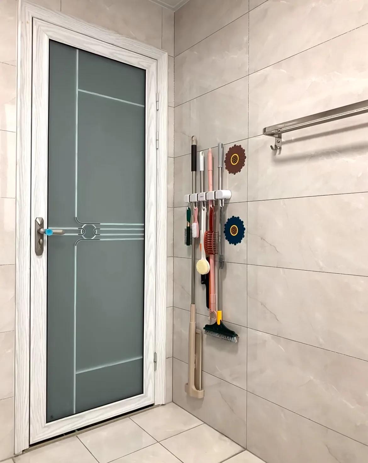 家裏的掃把、拖把等長杆清潔工具,用完一般都是靠在牆根,來來回回總能碰到,每次碰倒還要抱怨幾句,日子就在“倒-扶-抱怨”中循環。