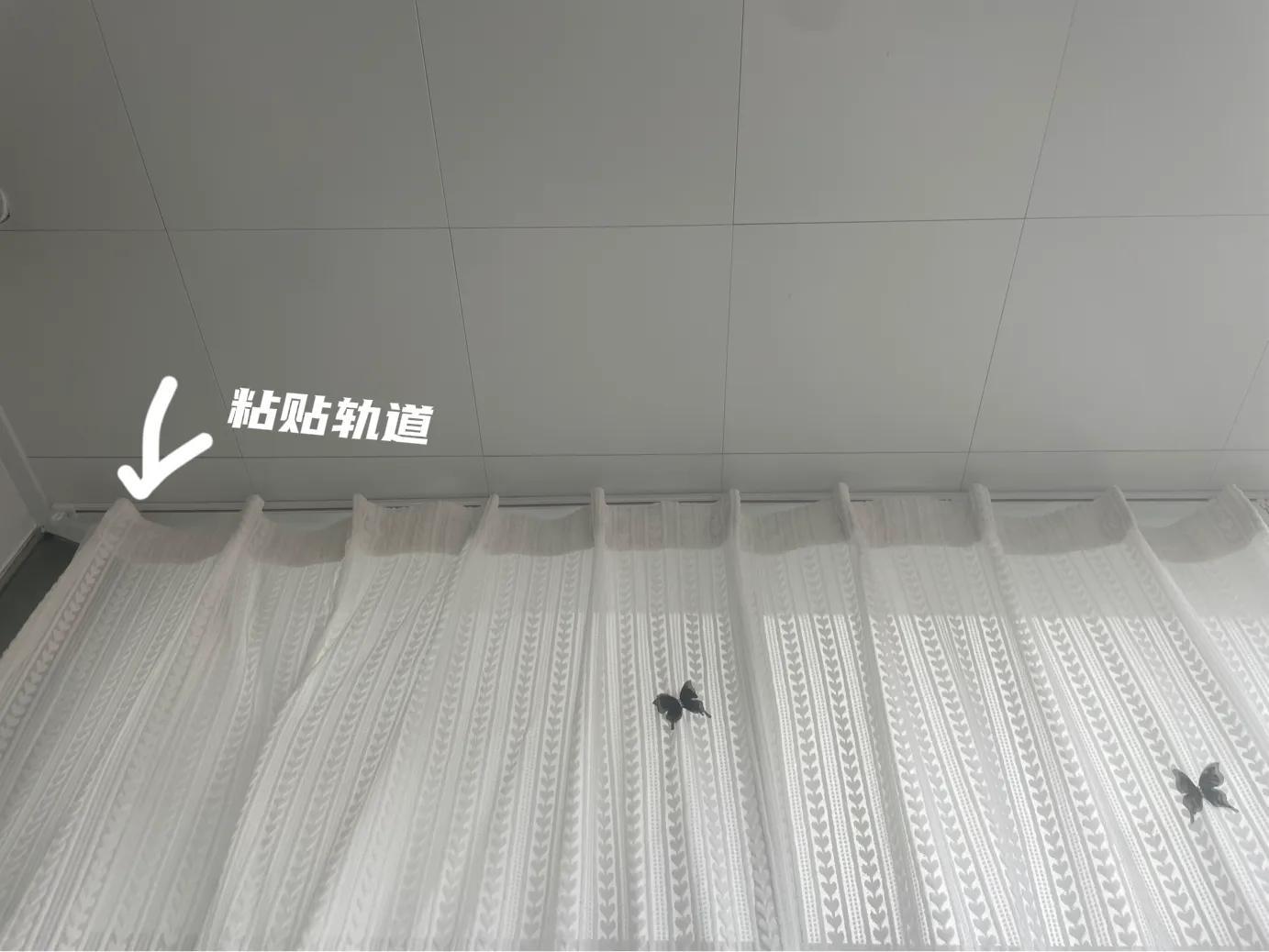 原本我想着要打螺絲安裝的窗簾軌道,其實有自粘式的,貼在吊頂上就好,非常簡單,甚至還有魔術貼布,可以直接貼在玻璃上,遮陽問題都能搞定。