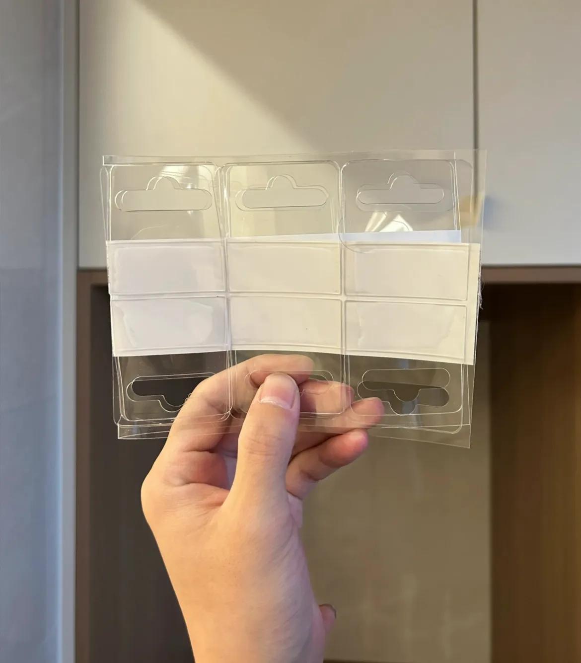 爲了解決這個問題,我在網上買了這種透明的拉手,有點像超市掛袋商品上那一截。