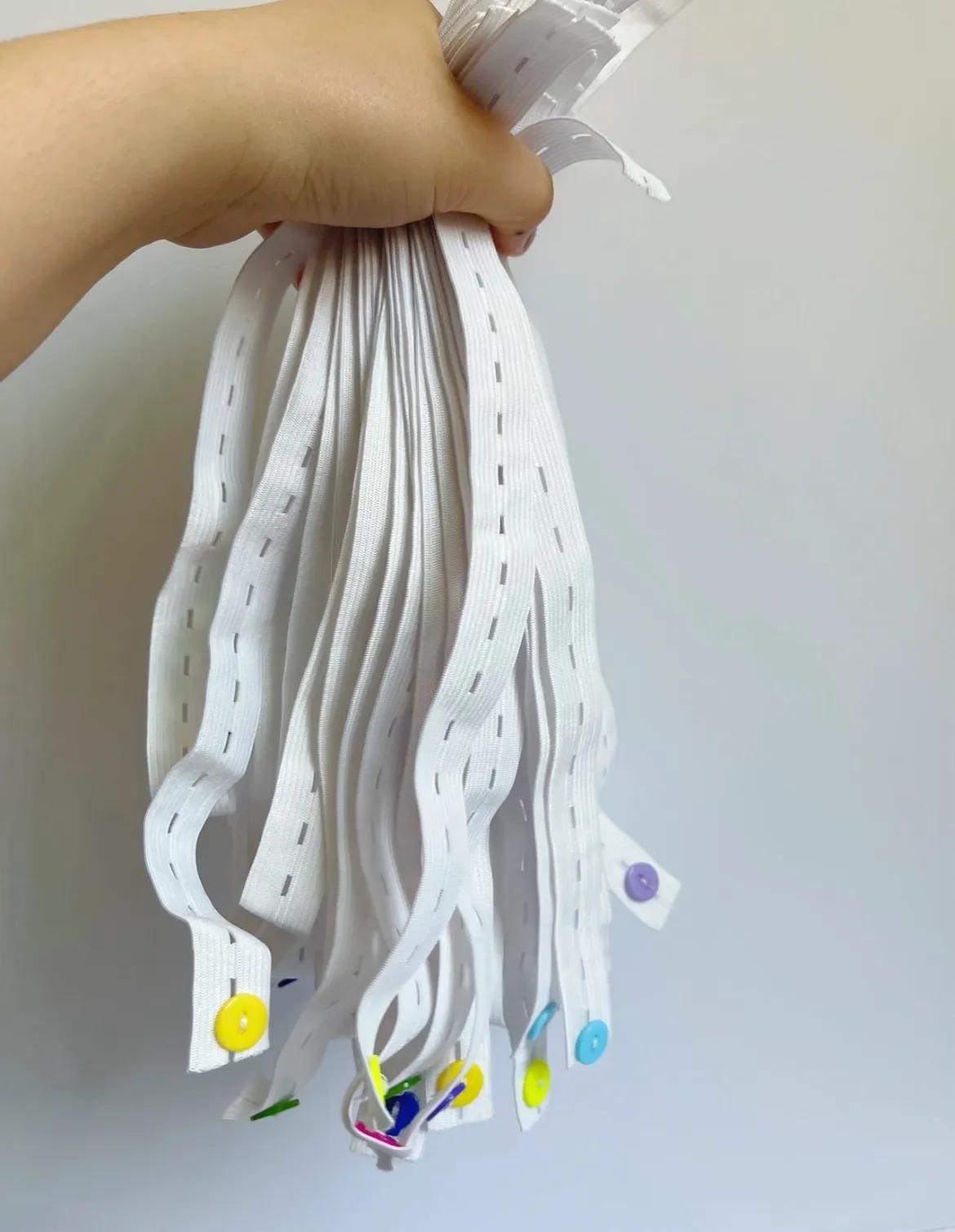 它是一根有着很多釦眼的鬆緊帶,彈性特別好,一端的扣子可以折回來,扣進它的扣眼裏,形成一個閉環,完成收納。