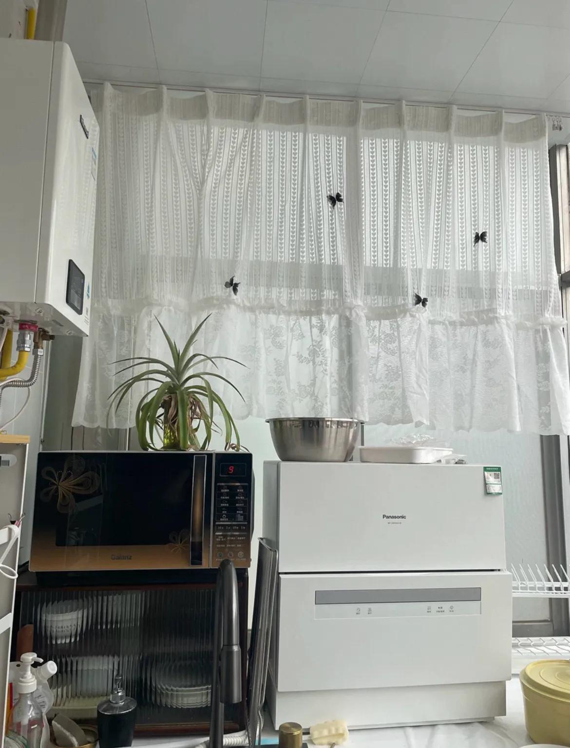 我家西曬廚房,每天下午溫度直逼桑拿房,我深知窗簾可以擋住陽光,但因爲廚房是鋁扣板吊頂,牆壁三面又都是玻璃,便一直覺得“裝不了”窗簾。