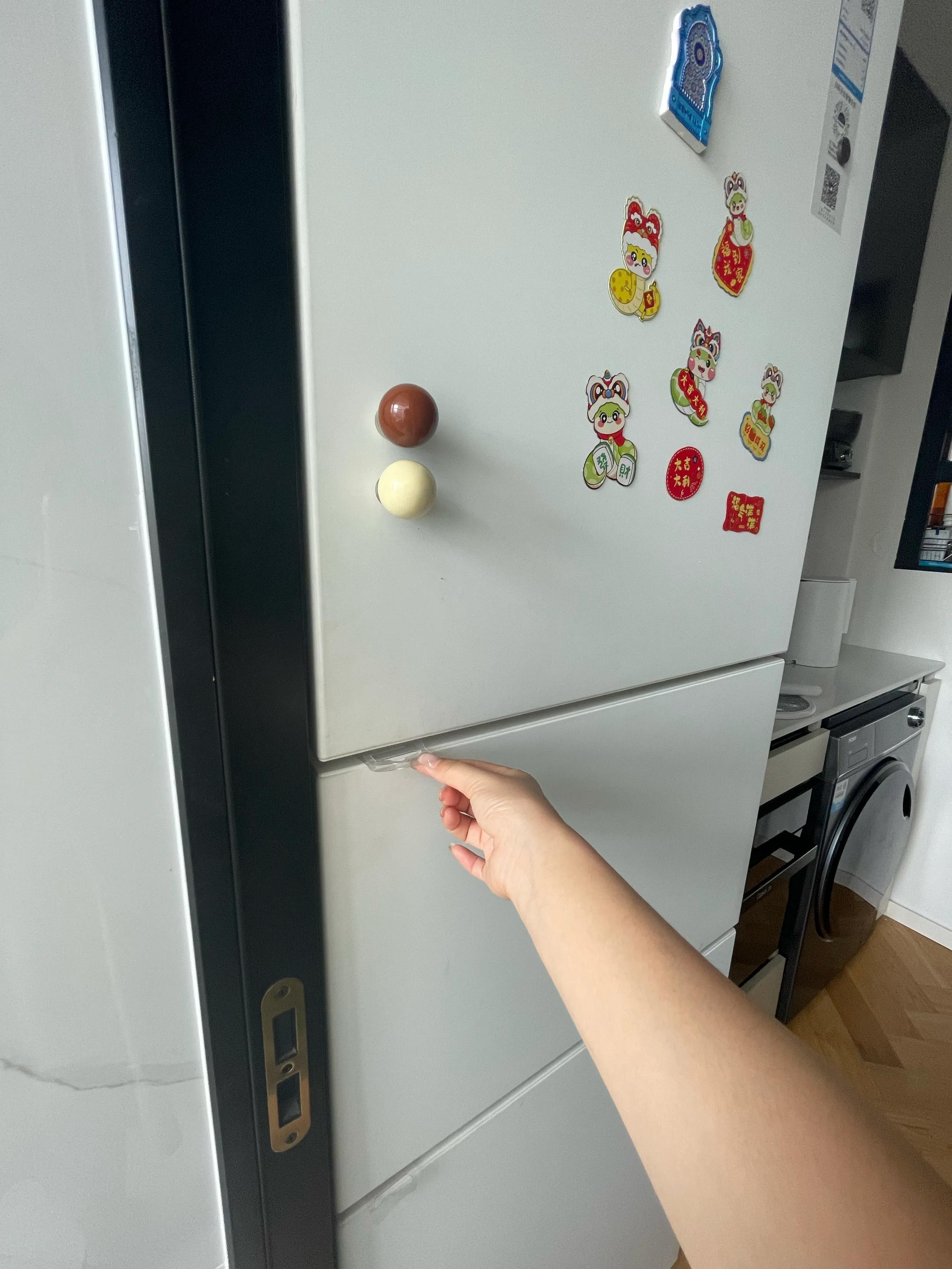 開的時得先按再摳,比把手櫃門多一步操作,關的時候又經常出小差錯,時而按上時而按不上的,心情跟着受影響,我居然還一直忍受着,它帶給我的不便、與煩躁。