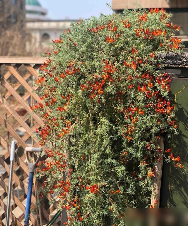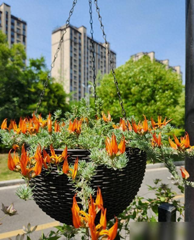 陽臺掛盆鸚鵡嘴百脈根,省地兒又出效果,橙紅色調提亮整個空間。