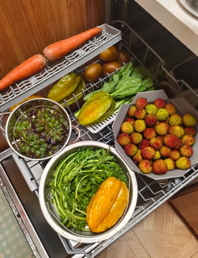 家裏有洗碗機的,就真的沒必要買什麼果蔬清洗機了,蔬菜也好,水果也好,甚至你都不用手洗了!