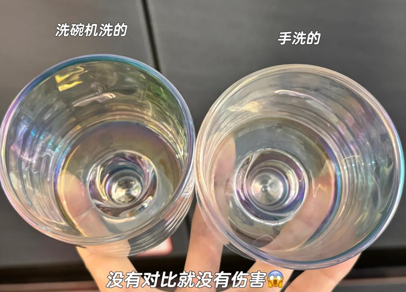 玻璃水杯,用手洗的時候,不僅費勁(需要專門的刷子),而且很容易洗不乾淨!這個時候,我就建議大家用洗碗機洗。