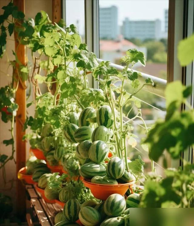 真羨慕這位太太把五平米陽臺變成綠油油的西瓜樂園啊!