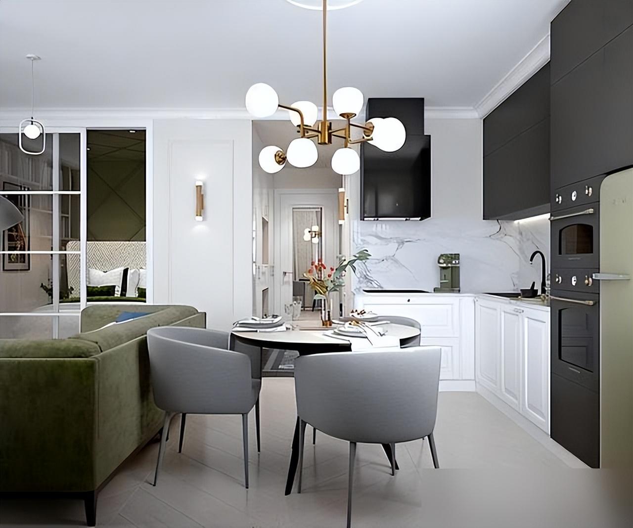 微波爐烤箱疊在吊櫃下,冰箱嵌進櫃子裏,牛油果綠的外殼跳出來,連切菜都多了份新鮮勁兒。