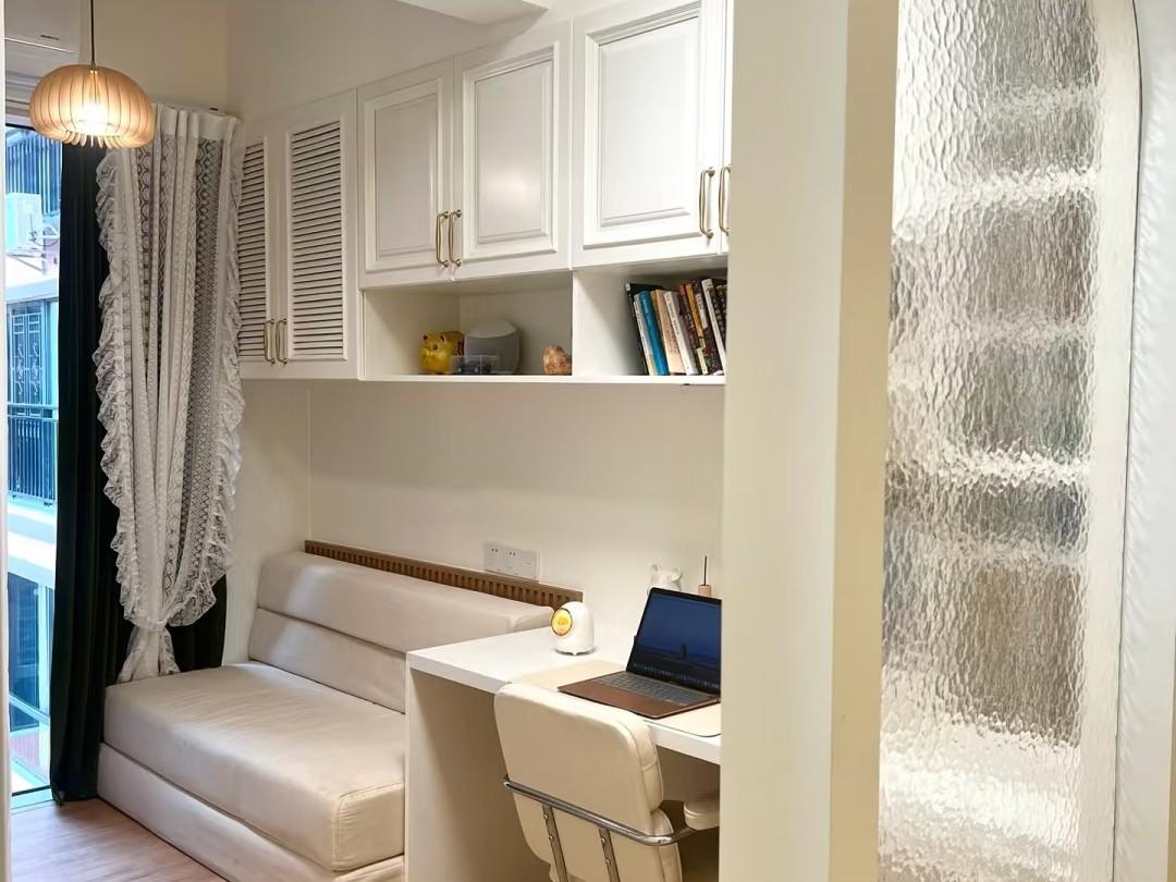這次裝修就改變了這種做法,把次臥的牀取消了,取而代之的是改成了多功能房間。傢俱改成摺疊式的,平時就是個沙發,展開就是一張牀。