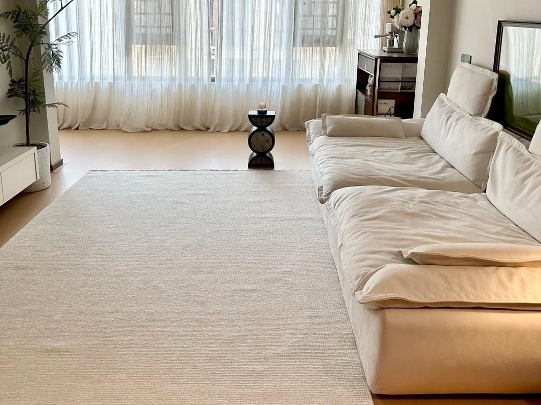 但是,在入住以後就後悔了。這個沙發往客廳一擺,整個客廳快被佔滿了。大家想一想:三人座沙發,再加上貴妃榻,有多大呢?