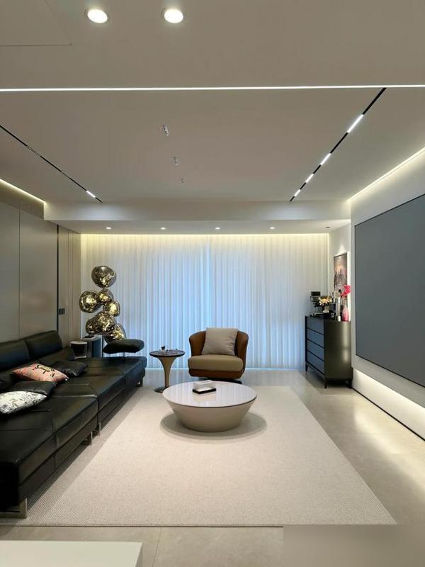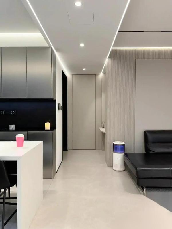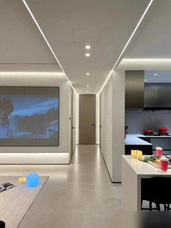 客廳那大平頂配嵌入式燈帶,光線溫柔得像給房間披了層薄紗,不刺眼卻把角落都點亮了。