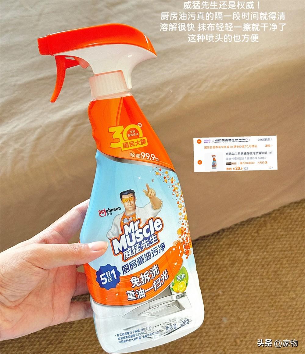 廚房油煙機、竈臺旁邊,或者是水槽周圍的頑固油污,其實用這威猛先生的噴霧就能清理乾淨,如果有重油污的話,噴上去等一會兒也能溶解掉,個人感覺是這麼多年以來,我用到的最爲好用的油污清潔劑了。