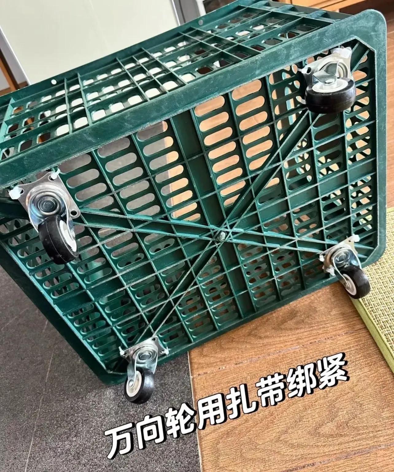 其實只要加根繩子,加四個輪子,它就能變身超實用的買菜車,有繩子的直接用,沒有的買一根也便宜,怕手疼還可以買個硅膠拉手。