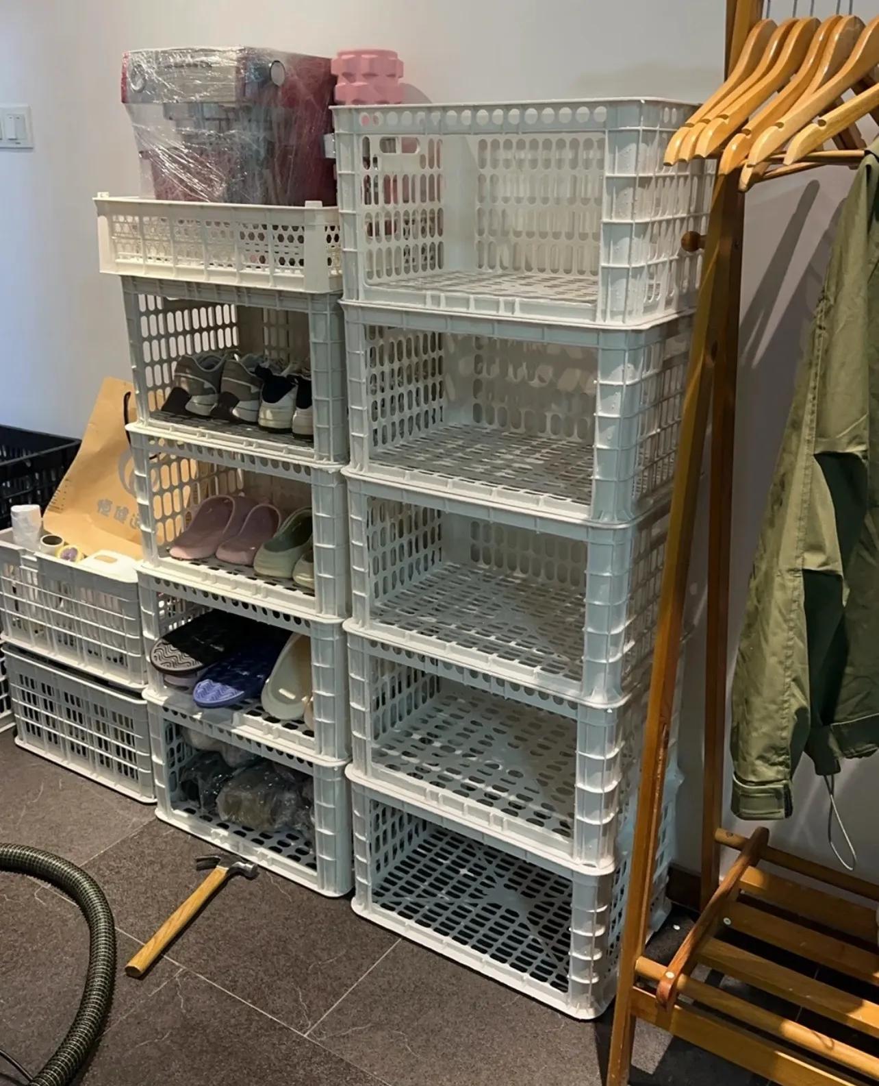 買一個鞋櫃有點貴,水果筐攢下來,就是個菜場限定版鞋櫃。