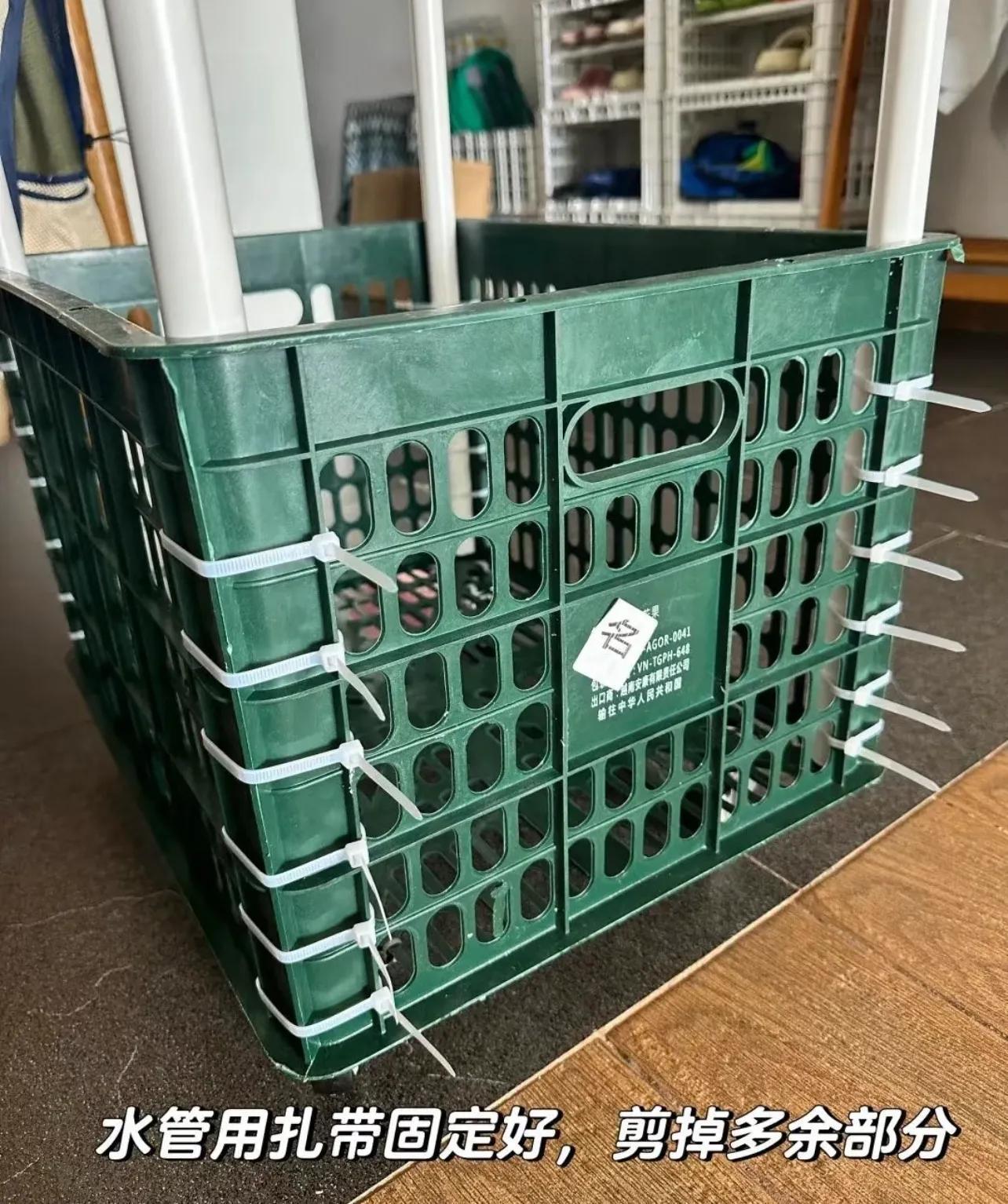 用紮帶把水果筐固定就可以開始放東西了,家人從最初的“又撿破爛”到現在“給我書房也整一個”,這大概就是手工改造最爽的逆襲時刻。