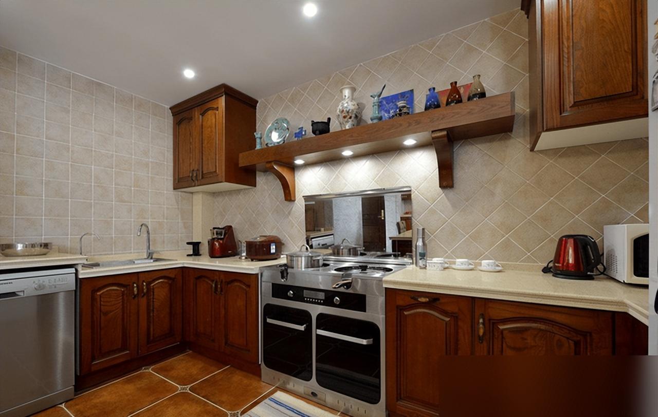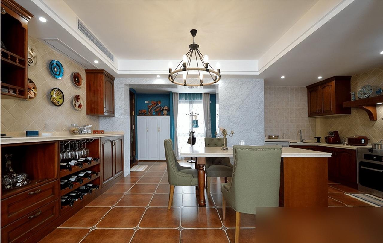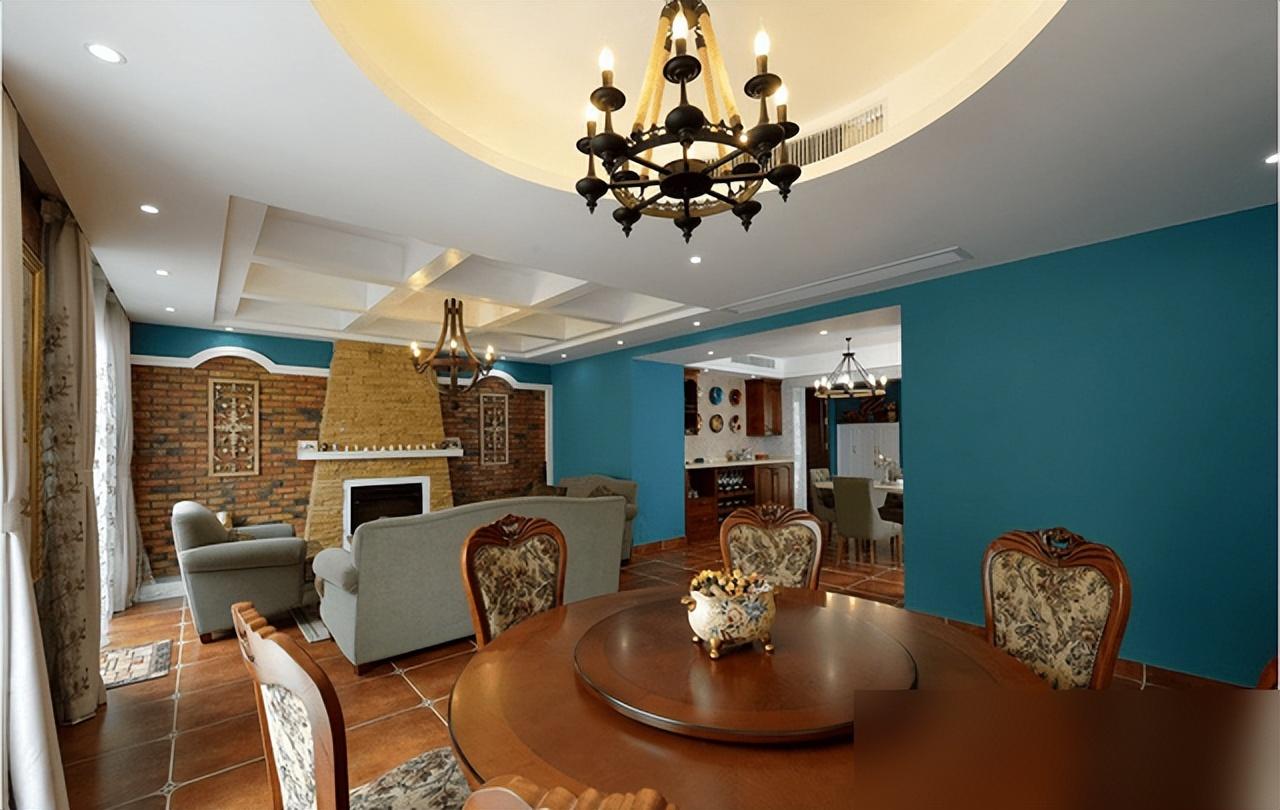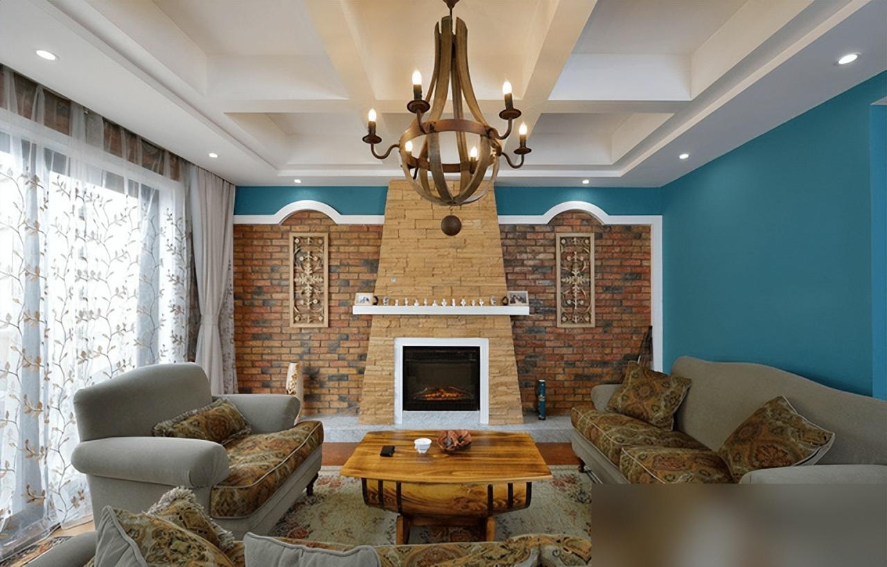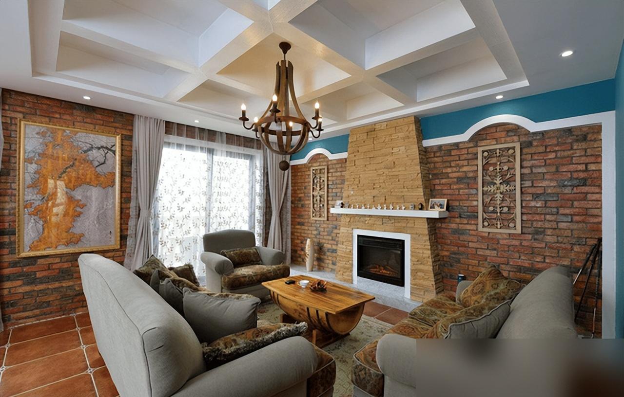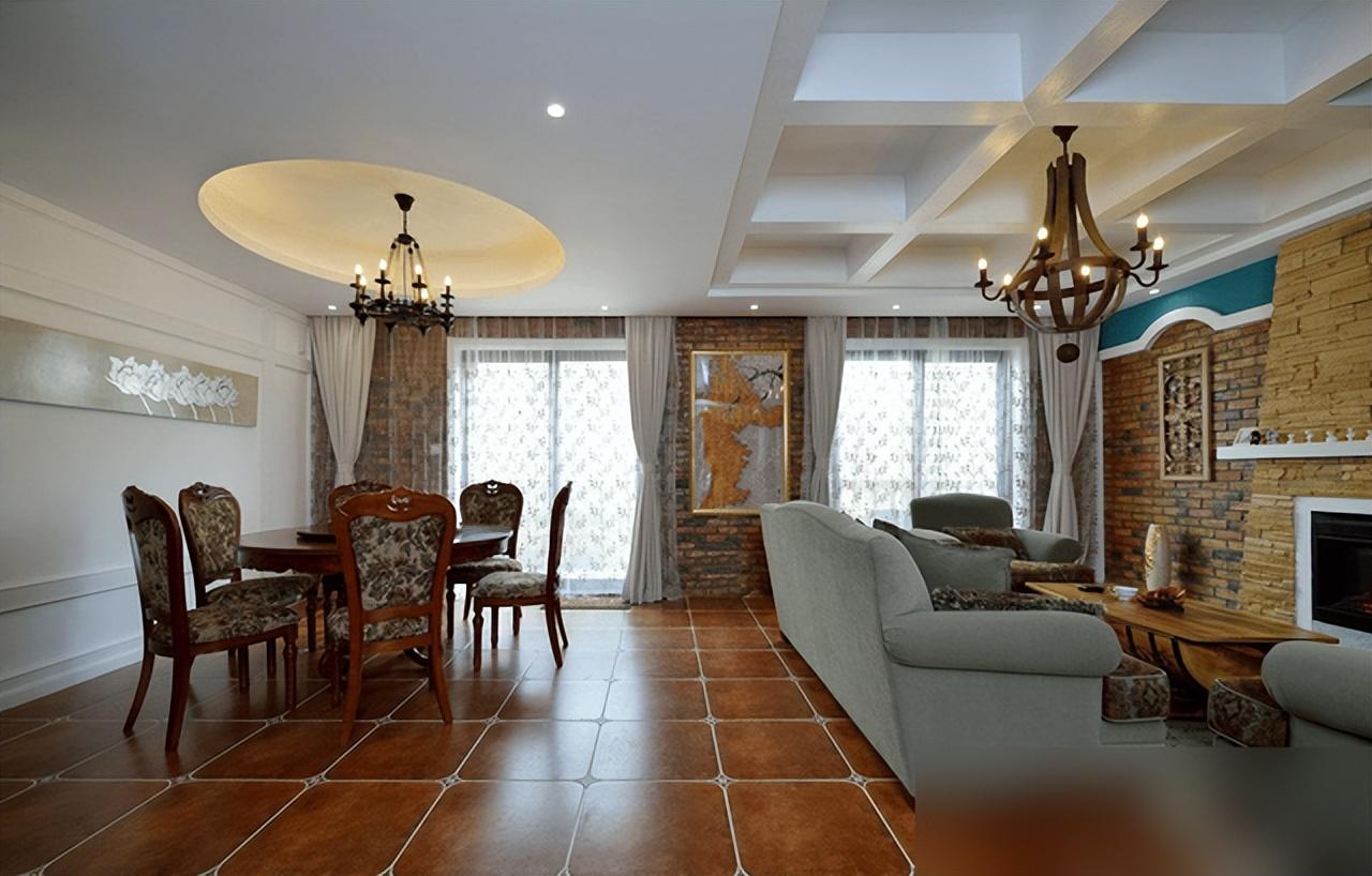 美式復古不靠堆水晶燈雕花柱,紅磚仿古磚接地氣又省錢。