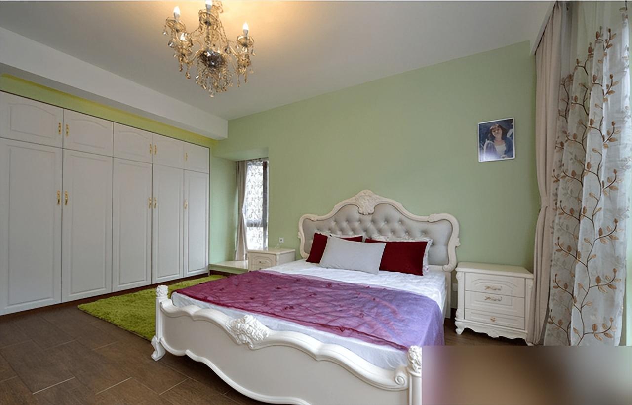 臥室那抹淺綠搭紫色牆面,夠大膽!