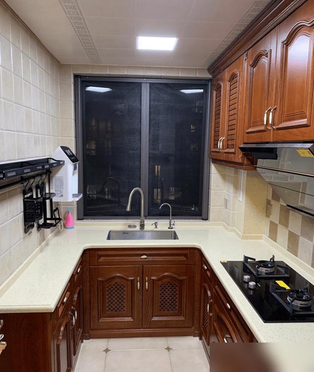 深色傢俱確實要勤擦勤維護,但嵌入式衣櫃和U型廚房的設計特實用。