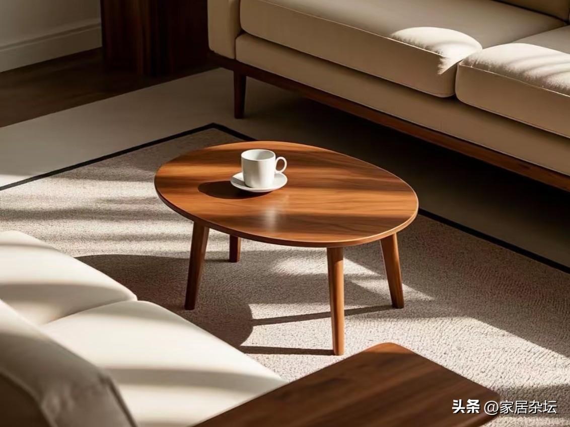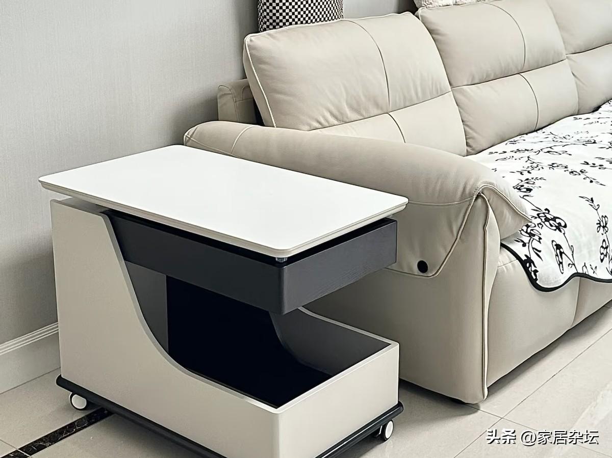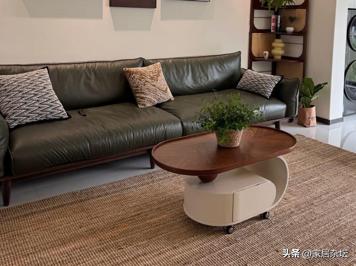 看看現在比較流行的小型又輕便的小茶几。當然,還可以放小邊幾,沙發旁邊放移動的推車。甚至可以直接放棄茶几,而是用地毯加邊櫃,營造出更開闊的客廳活動空間。