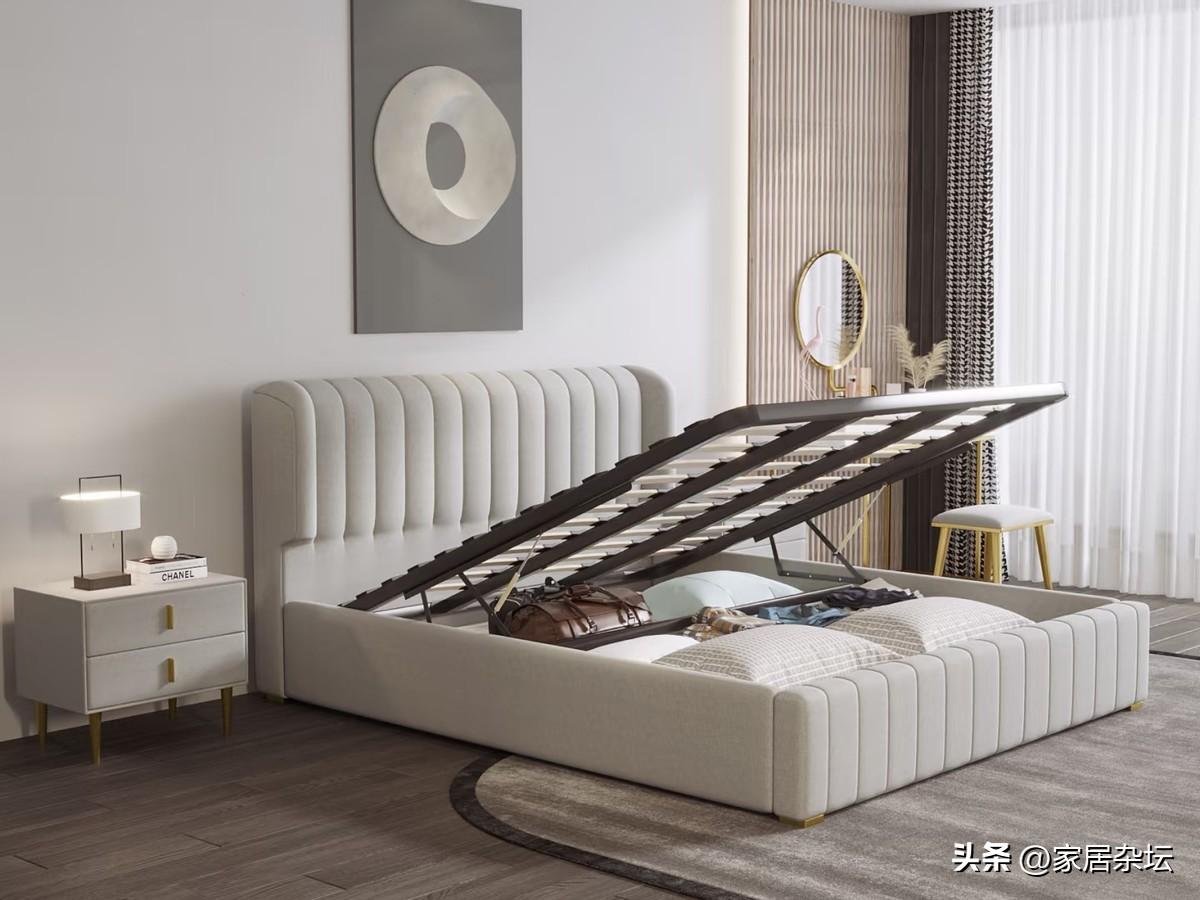 往往這一類的布藝大牀的體積都是比較大的。放在臥室裏,臥室顯得很壓抑,並且它的高箱體,拿放物品都是很麻煩的。