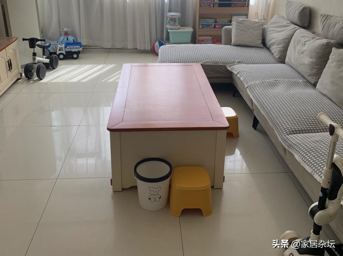 尤其是對於家裏有小孩的家庭,很容易造成磕碰。再加上茶几表面堆滿雜物,顯得亂糟糟的。