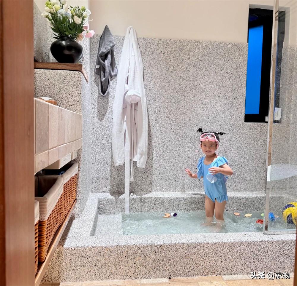 這裏也變成了孩子在夏天最喜歡待的地方,穿上泳衣,在裏面玩玩水,和各種浴缸小玩具,這一幕看着就覺得幸福。
