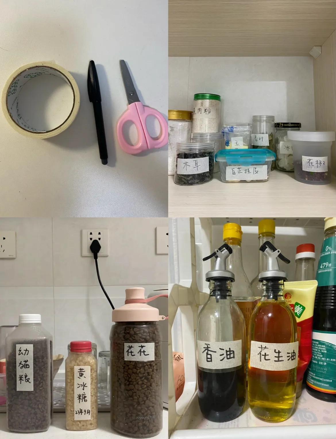 像廚房的調料罐,鹽糖不分的,可以用美紋紙把名稱貼上去,避免拿錯;