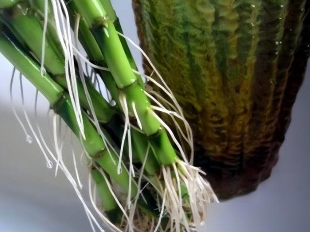 生根後每週往水裏滴兩滴營養液,像給湯裏撒鹽花那麼適量。