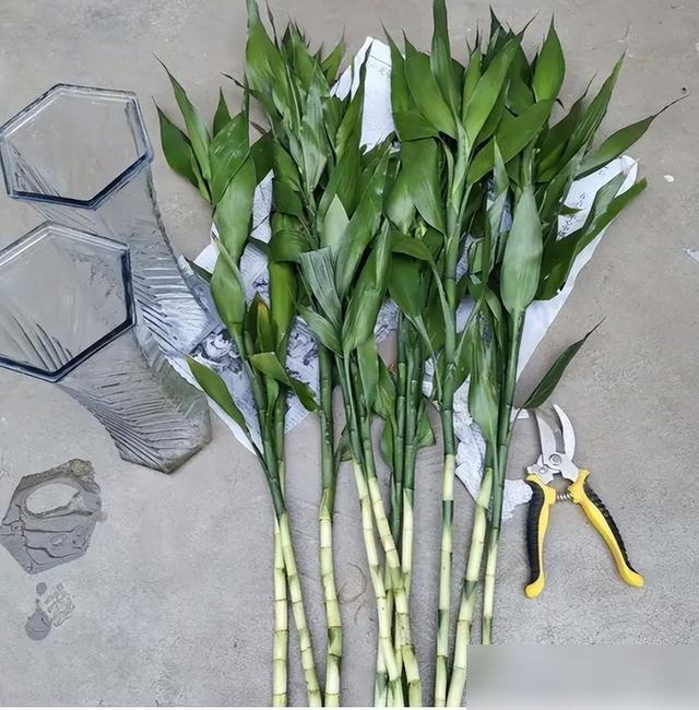 新買的富貴竹別急着塞瓶子裏,得先動剪刀。