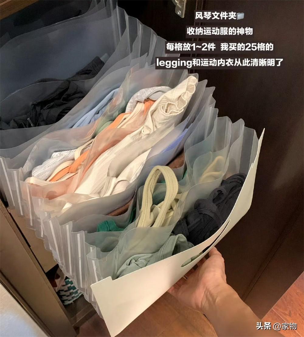這種風琴文件夾,原本是收納文件紙張的,但我買回家後發現,用它來收納運動服、瑜伽褲、內衣,真的再合適不過了。