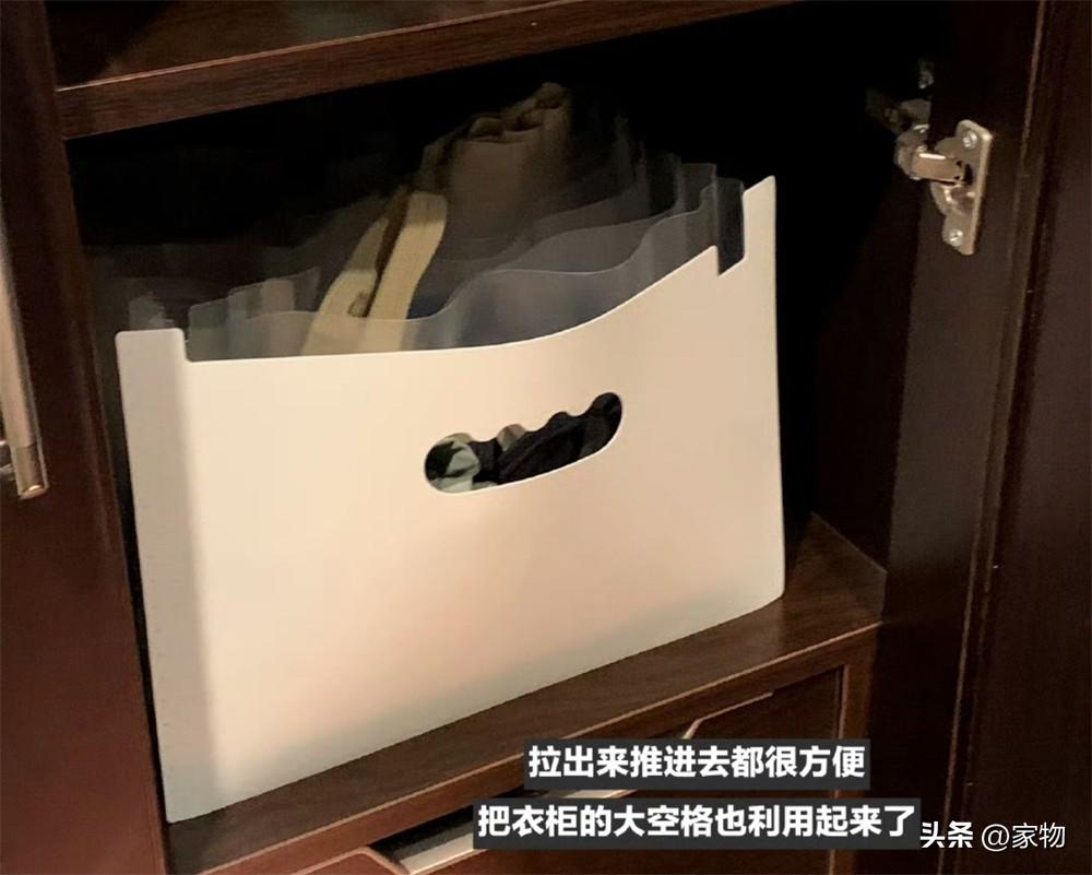 只需要把它放到衣櫃的空餘格位裏,就能豎向收納各種小件衣物,將衣櫃內的縱向空間利用起來。
