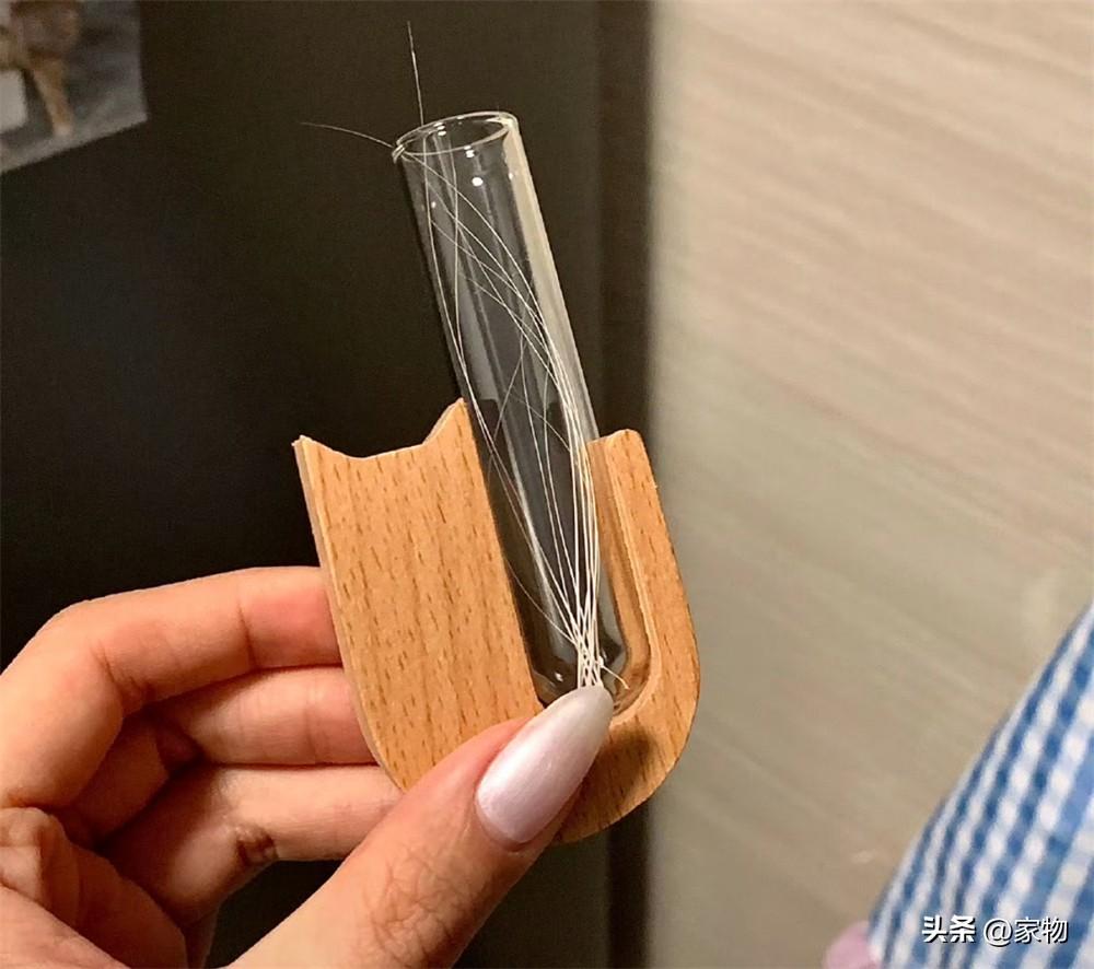 它本身是個木扣磁吸冰箱貼,上面有一個玻璃管,可以插一束小花,或者是放一些其他的小裝飾物,但我發現用它來收納貓咪掉下來的鬍鬚,是真的合適!