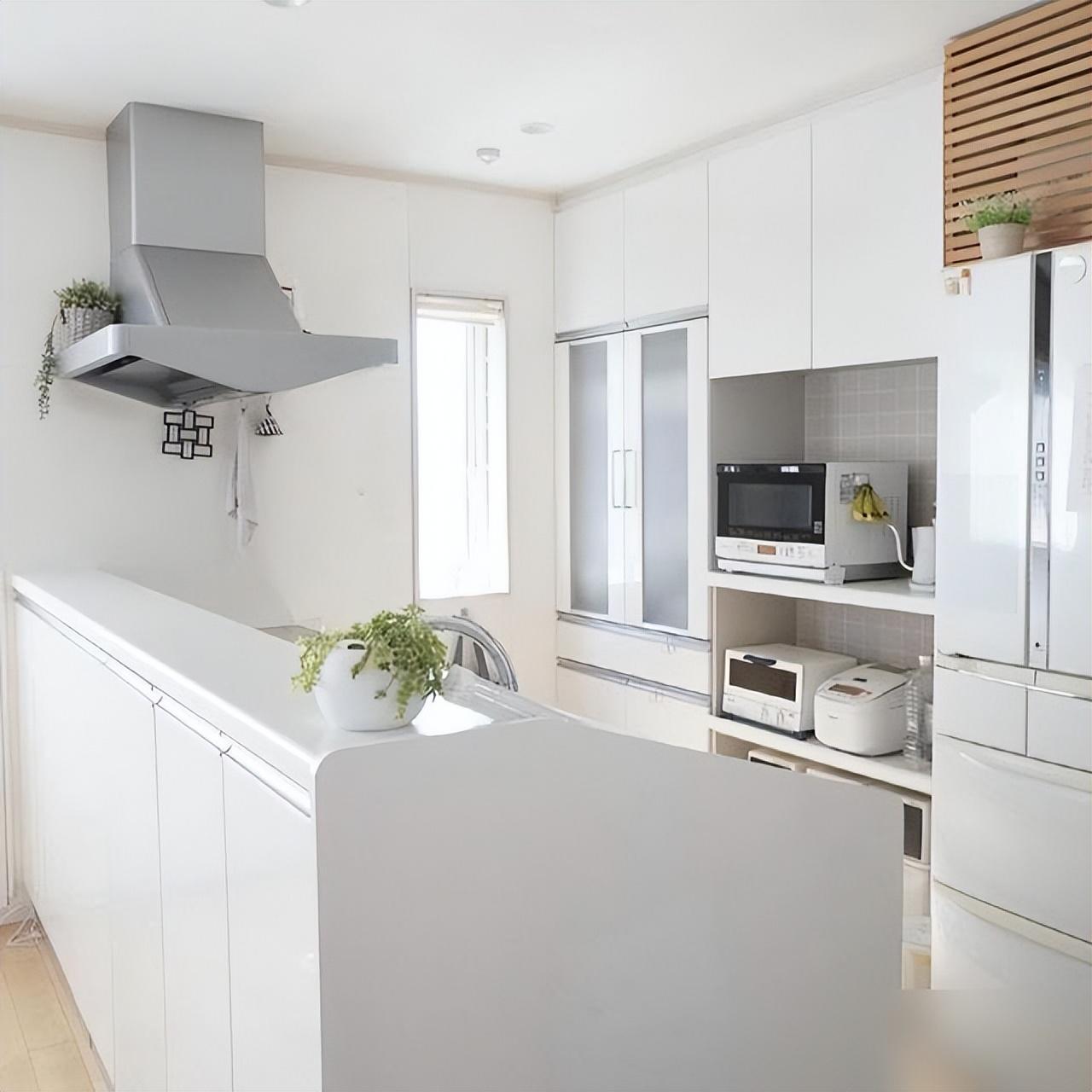 還有收納,根本不是買一堆花裏胡哨的收納盒,而是“先扔再收”——過期的調料、沒用的餐具、穿不上的舊衣服,先狠下心清掉,剩下的再分類:白色餐具統一放進抽屜分層擺,找的時候一眼就看到;嵌入式櫃子嵌在牆裏,表面看着空無一物,打開什麼都有,這不就是“藏起來的整潔”嗎?