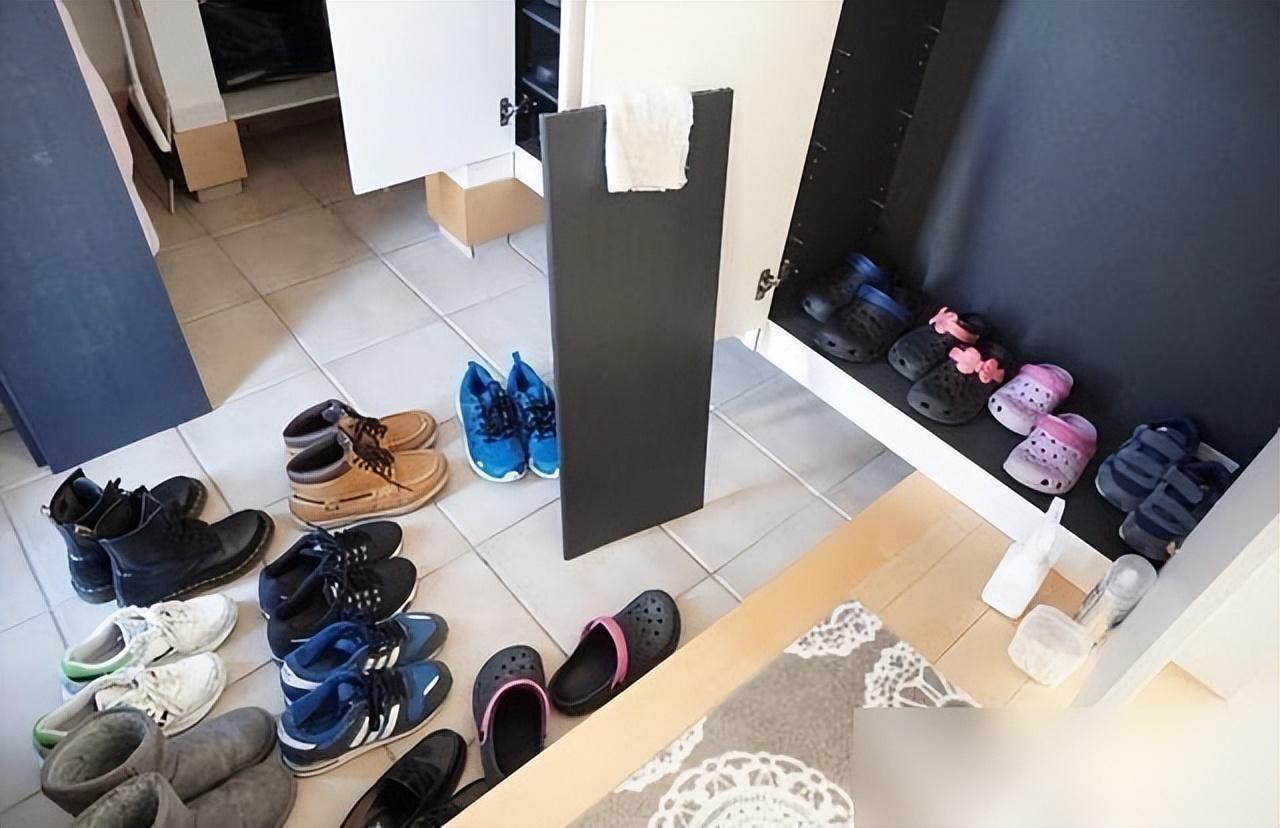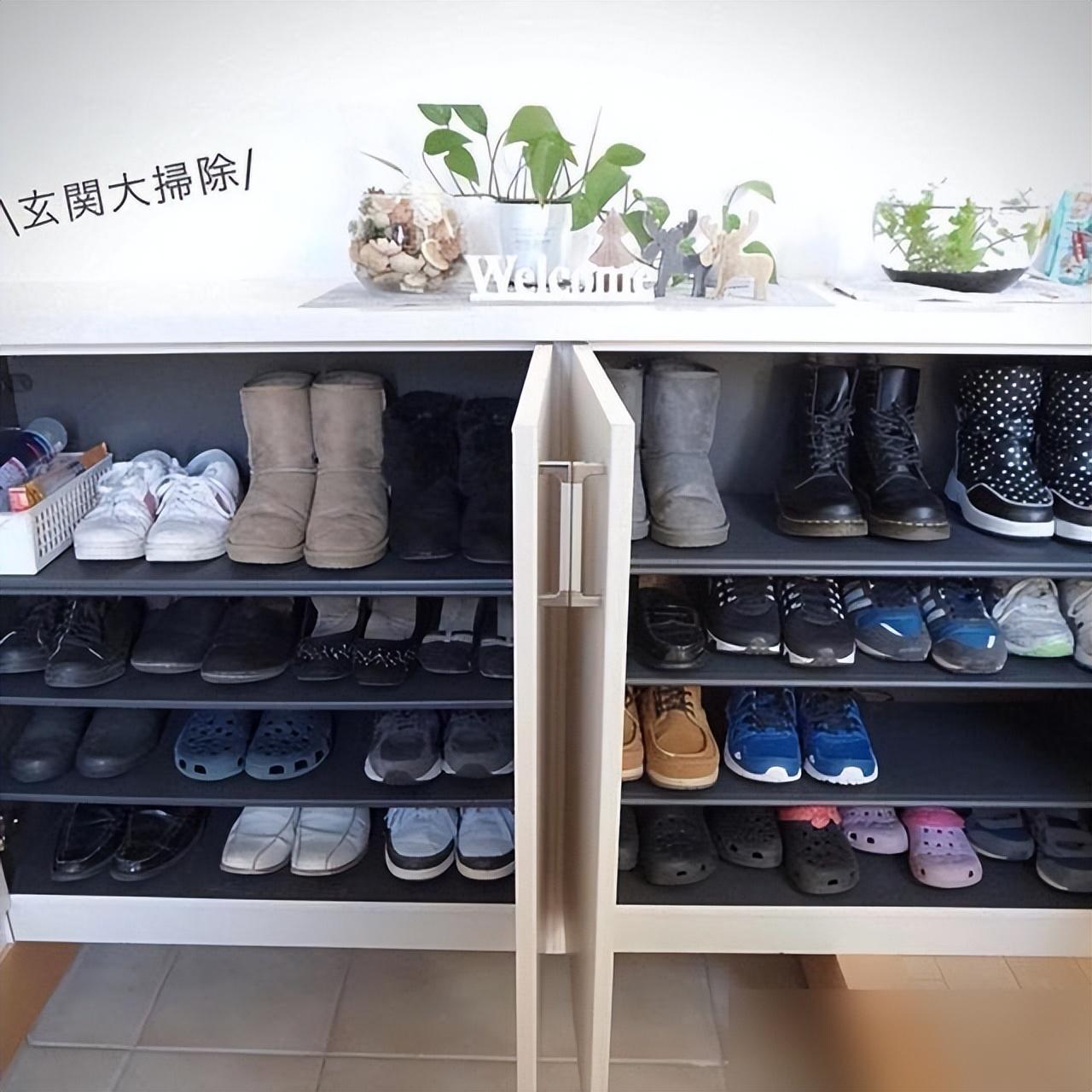 玄關的細節真的戳心,門後掛包溼巾,出門擦鞋、回來擦手都方便;鞋子每天出門前擺成一排,不用的時候全收進櫃子裏。