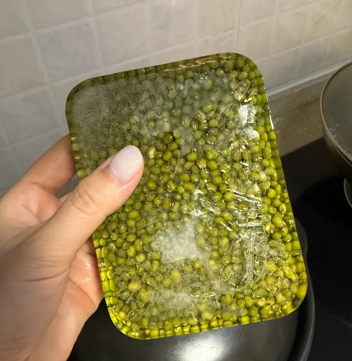 網友@M,我簡直是個大聰明,把洗乾淨的綠豆帶一點點水,放進冰箱裏冷凍,等想喝綠豆湯時,和冰糖一起拿出來放電飯鍋鍋裏,就一個煮飯鍵搞定!