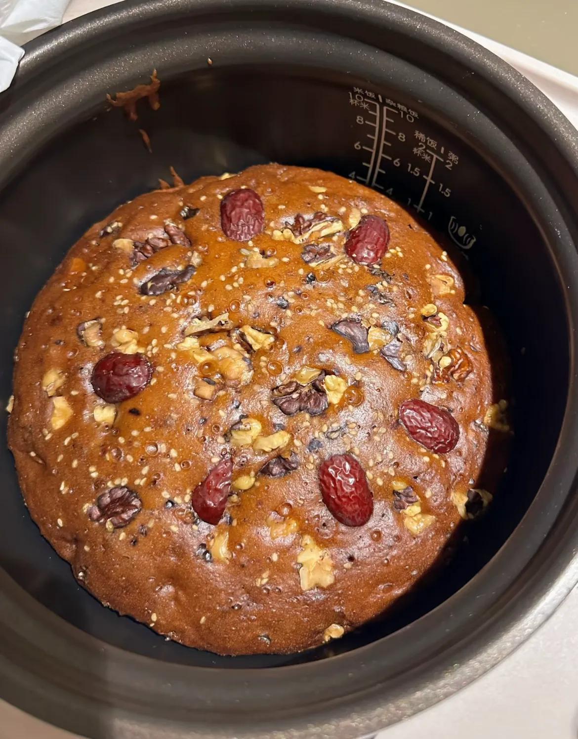 網友@小慄就用電飯煲做了棗糕當早餐,一家老小喫完都直誇:好喫又營養~
