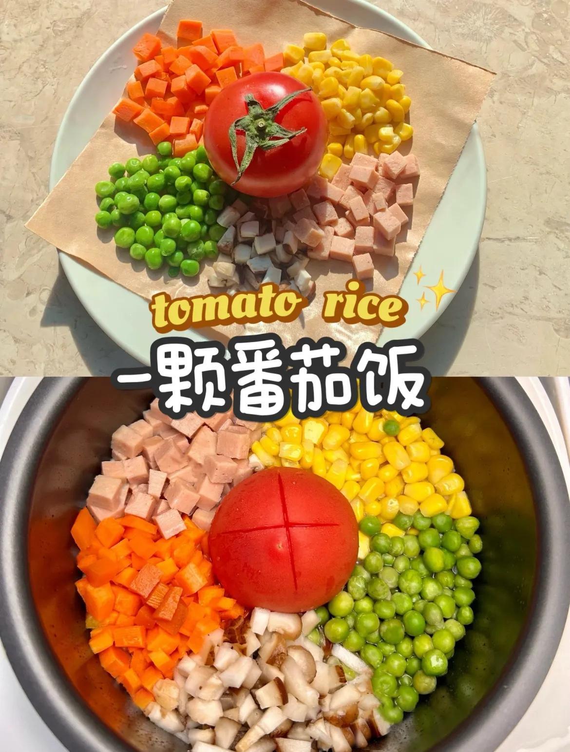 也可以中間放一個完整的大番茄,這樣出來就是外面賣好幾十的“番茄飯”!
