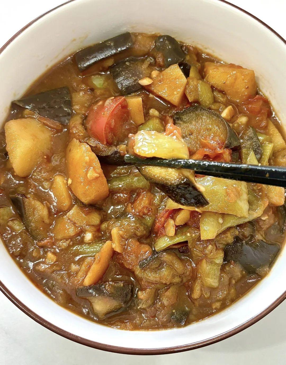 說實話真的方便好喫,土豆軟糯茄子吸汁,湯汁拌飯能喫三碗,對我來說不用開火,沒有油煙就能喫上飯。簡直不要太爽。