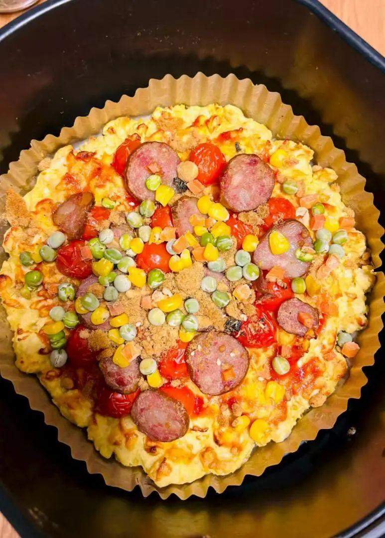 拿空氣炸鍋做也可以,180度10分鐘,比外賣的厚底披薩還帶勁。
